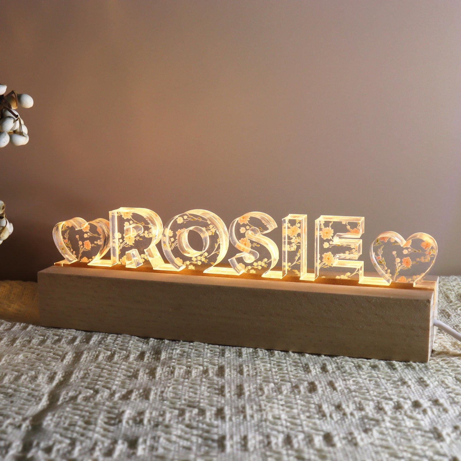 Personalized Flower Night Light Gift for Mom